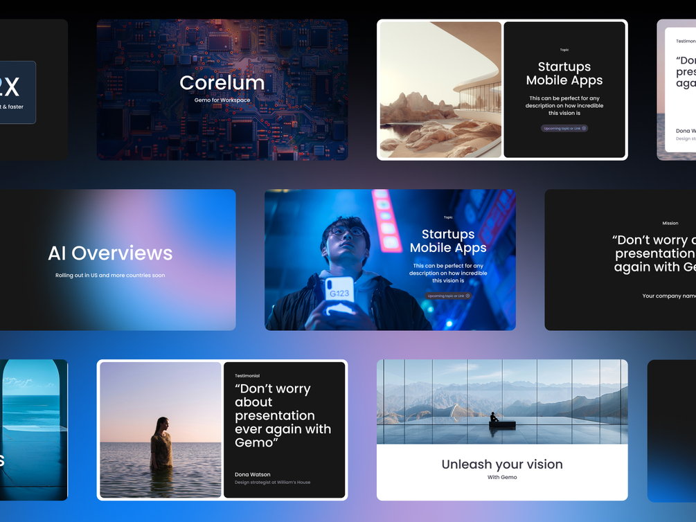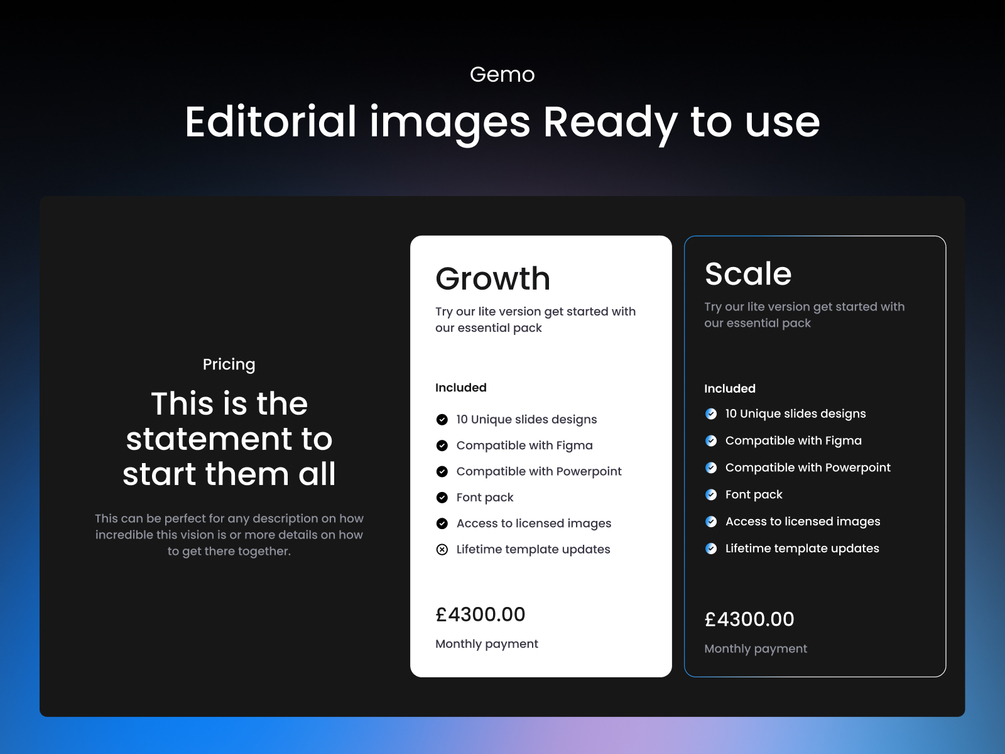 Incorporate stunning editorial style AI imagery into your pitch. High-quality visuals that make your pre-seed pitch deck and team slide pitch deck stand out.